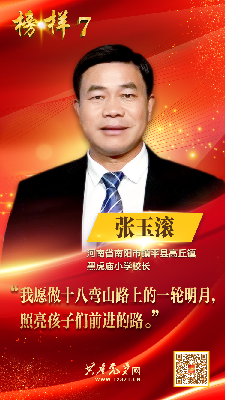 坚守初心,投身乡村教育事业。2001年9月,师范学校毕业的张玉滚毅然回到家乡,成为黑虎庙小学教师。从此,他往返于高丘镇和学校之间的山路上,风里来雨里去,一干就是二十一年。他经常骑摩托车为学校托带书本、教具,少则几十斤,多则百余斤,一个来回近10个小时,先后骑坏了3辆摩托车。这么多年来,学校老师换了一茬又一茬,只有张玉滚一直在坚持。在张玉滚的执着坚守下,一批批学生走出大山,用知识改变了命运。乡亲们都说:“张老师就像大山深处的一轮明月,照亮了山村孩子前行的路”。