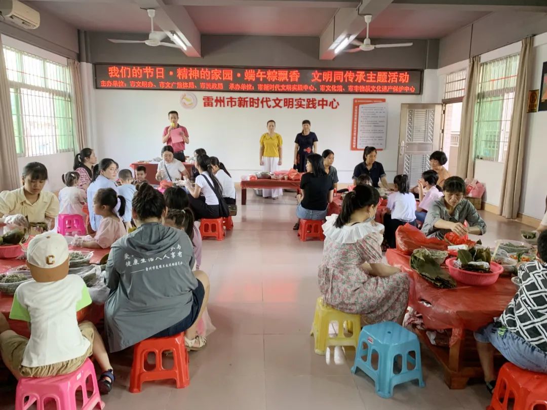端午粽飘香,文明同传承。6月22日,雷州市文明办、市文广旅体局、市民政局、市新时代文明实践中心、市文化馆、市非物质文化遗产保护中心联合举办现场包粽子传统手艺亲子体验活动,吸引近20户家庭参加。