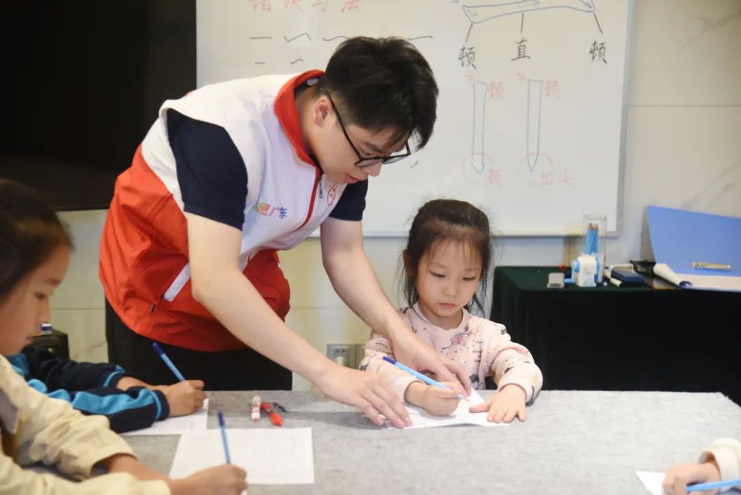 培训班邀请文化文艺志愿者长青书画院老师为学生们进行现场教学。授课老师从汉字起源、书法文化、执笔运笔方法、汉字的基本笔画等方面进行讲解、示范,并指导练习,孩子们在老师的指导下一笔一划书写,从中感受中华传统文化的魅力,激发孩子对书法的学习兴趣和积极性。孩子们表示,老师们的书法课对自身很有帮助,在以后的学习中会不断坚持下去。