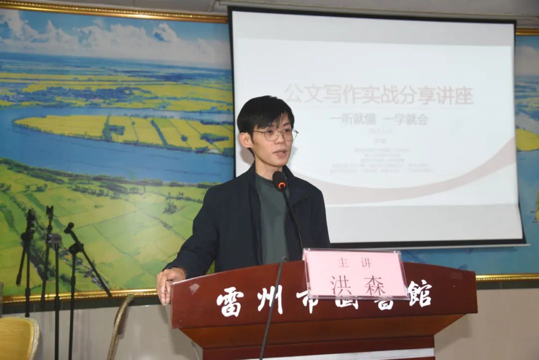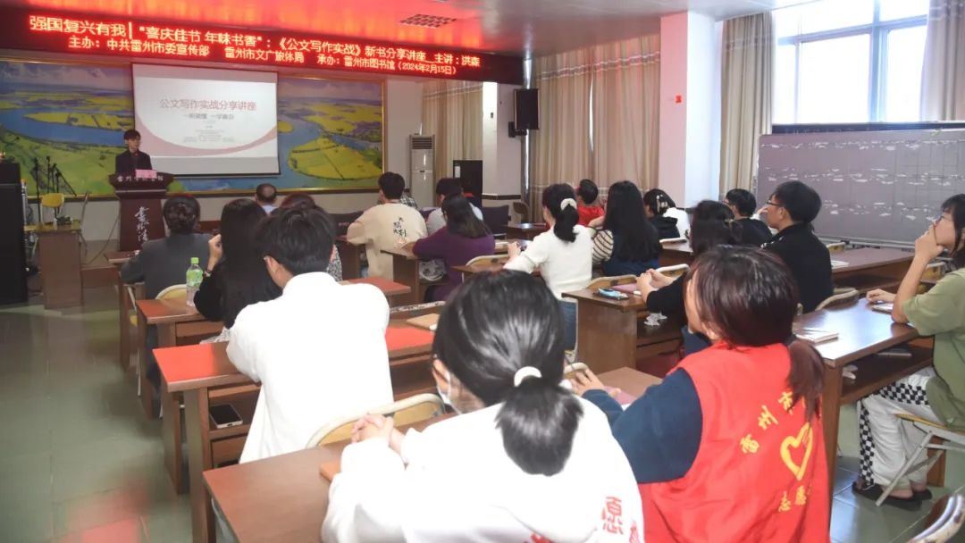 市文化广电旅游体育局、市图书馆、市作家协会有关负责同志及来自我市50多位青年干部、大学、中学学生参加了本次讲座。讲座邀请《公文写作实战》作者、本土青年作家洪森现场给大家分享公文写作的要领。