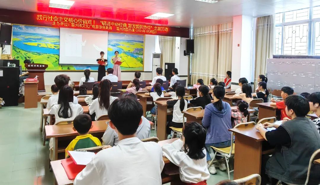 市图书馆举办此次主题活动旨在营造传诵经典、传承精神的良好氛围,增强青少年对中华民族传统文化的认同感,自觉传承、弘扬传统文化和民族精神。让青少年在唱诵中塑造优良人格,坚定理想信念,厚植爱国情怀。
