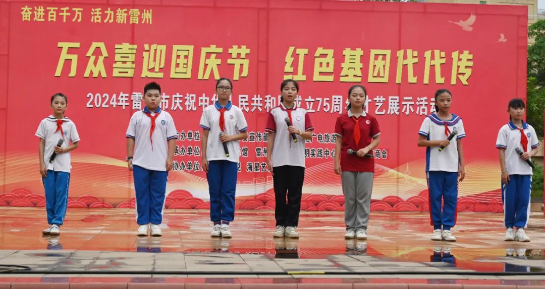 活动内容有红色经典歌曲演唱、爱国诗词朗诵等,节目内容丰富多彩。活动中,广大青少年用铿锵有力的声音朗诵着一首首优美诗文,用嘹亮的歌声歌唱祖国,演绎红色经典,表达了他们对祖国的热爱、敬仰和祝福之情,充分展示了雷州青少年的良好精神风貌,进一步激发广大学生的爱国热情,传承红色基因,增强民族自豪感,积极营造健康向上的文化氛围,引导青少年树立为实现中华民族伟大复兴的“中国梦”而努力学习、成长成材的人生志向,促进我市文旅融合,助力乡村振兴和城乡区域协调发展。